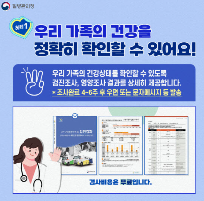 무료 건강검진, 영양 조사, 답례품까지! 국민 건강을 위한 중요한 조사에 참여하세요.