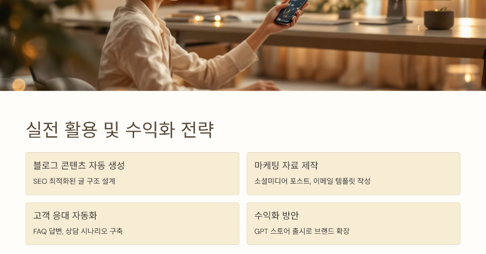 "GPT 자체를 수익화하는 전략"도 충분히 도전해볼 만합니다.