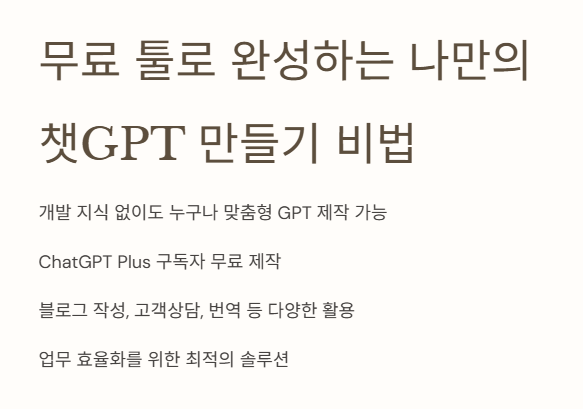 전문적인 개발 지식 없이도 무료 툴을 활용해 GPT를 직접 만들 수 있으며,