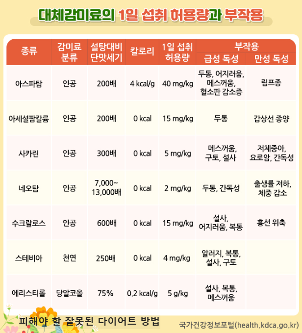 - 일부 연구에서는 대체 감미료가 오히려 식욕을 자극할 수 있다고 경고