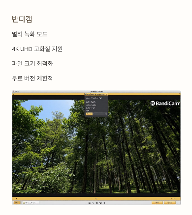 반디캠은 상업용 소프트웨어지만, 녹화 모드 선택 기능이 강력합니다.