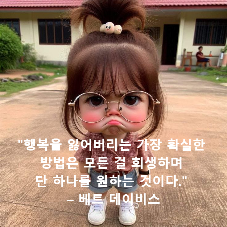 "행복을 잃어버리는 가장 확실한 방법은 모든 걸 희생하며 단 하나를 원하는 것이다." – 베트 데이비스