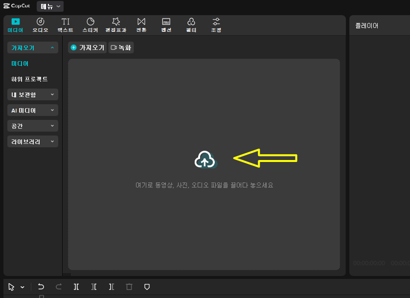 💡 Step 2. CapCut 기본 인터페이스 알아보기 (PC 기준)