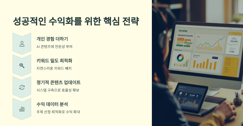 수익형 콘텐츠는 애드센스, 제휴 마케팅, 디지털 제품 판매 등으로 수익을 창출하는 콘텐츠입니다. GPT 템플릿은 반복 가능한 프롬프트를 사용해 고품질 콘텐츠를 빠르게 생성합니다. 이점: