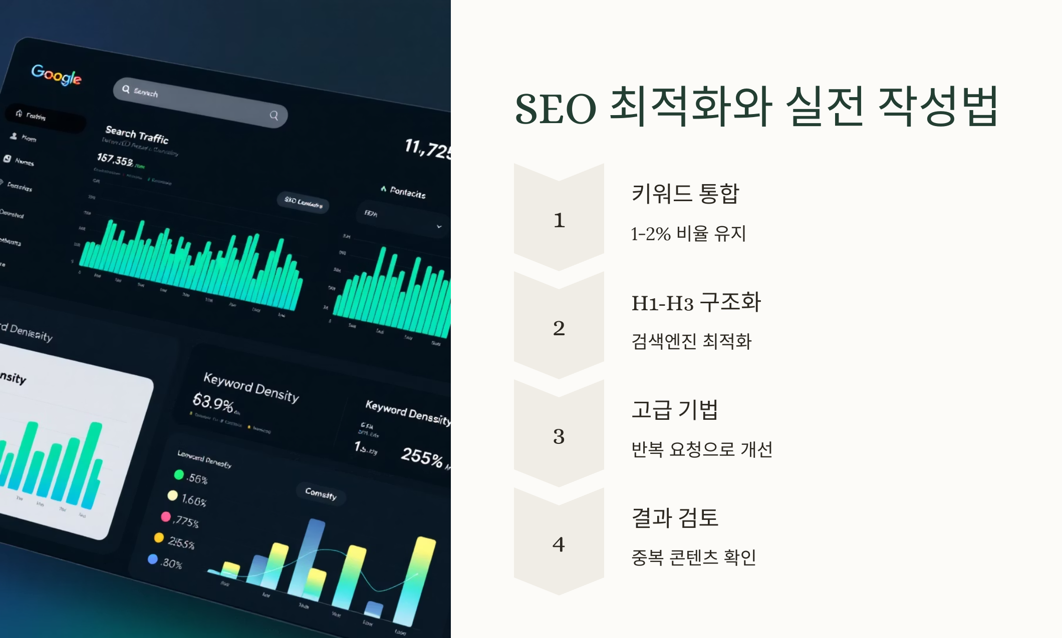 - 결과 기대: SEO 최적화된 긴 글, 구조화된 콘텐츠, 독자 친화적 톤.